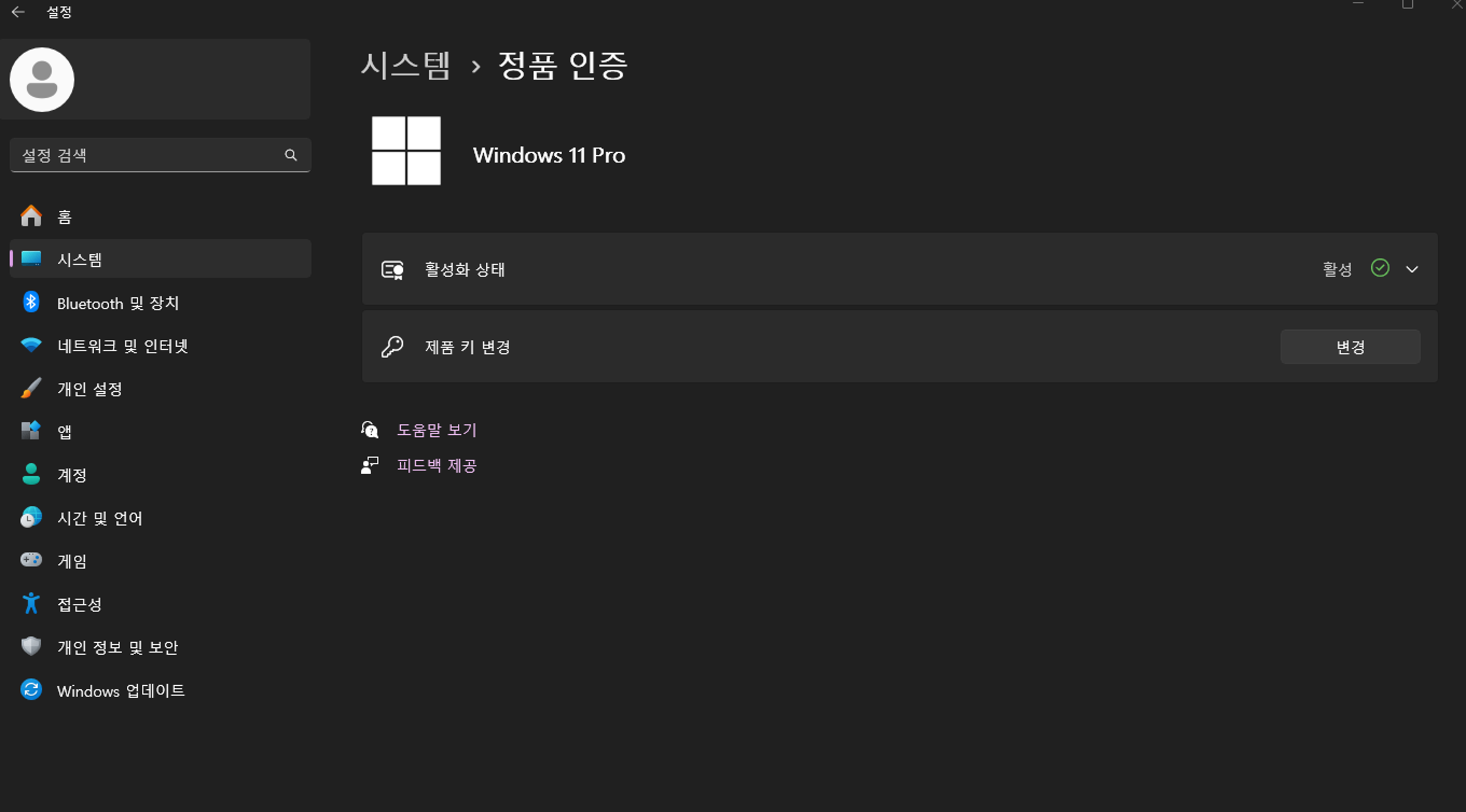 (해당 예시는 윈도우11 프로 제품키를 통해 인증하는것을 예시로 합니다