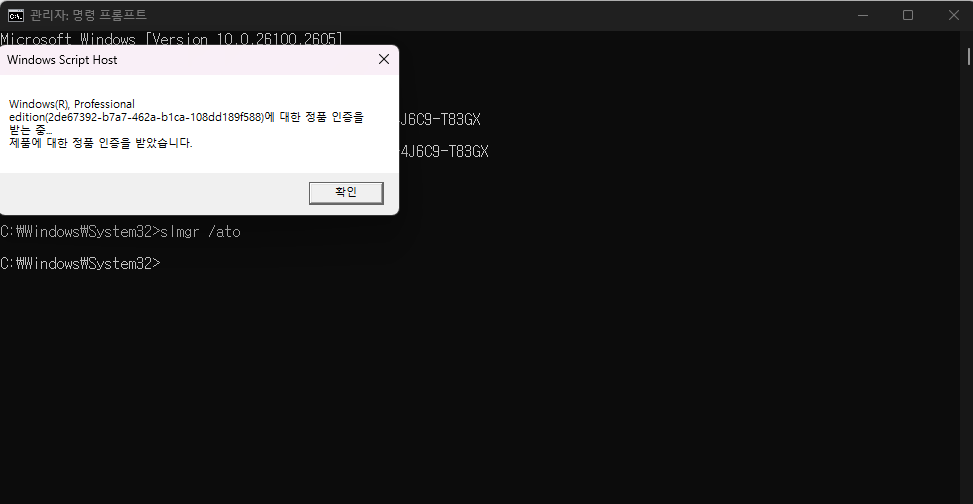 이렇게 해서 CMD를 관리자 권한으로 실행한 후 인증 작업이 시작됩니다